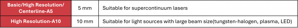 Aperture size (mm) | 10 mm | 5 mm | 10 mm | 10 mm |