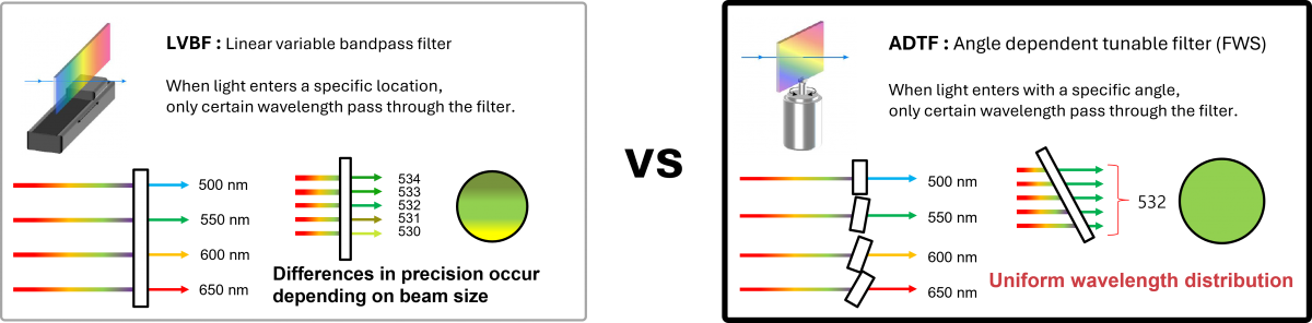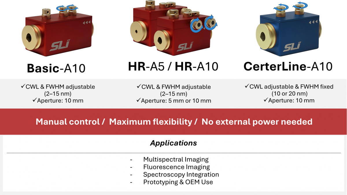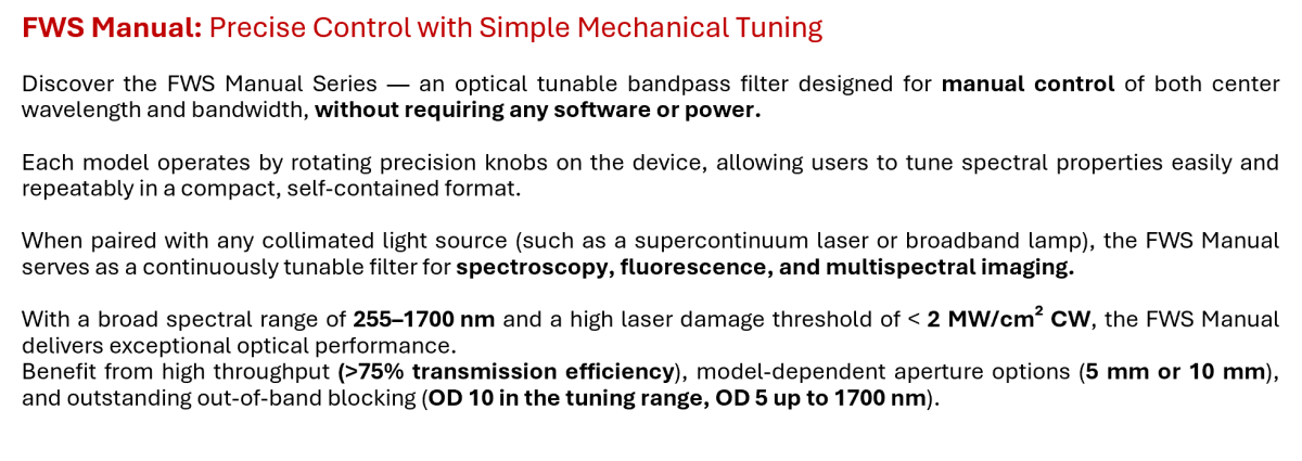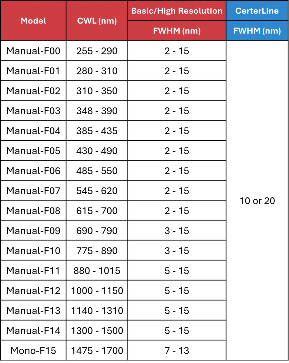 The center wavelength and bandwidth (FWHM) are manually tunable within the predefined range, depending on the selected model type.