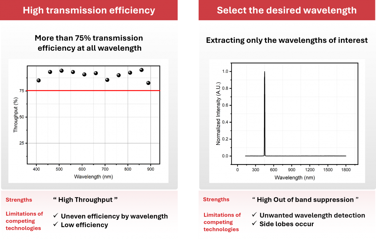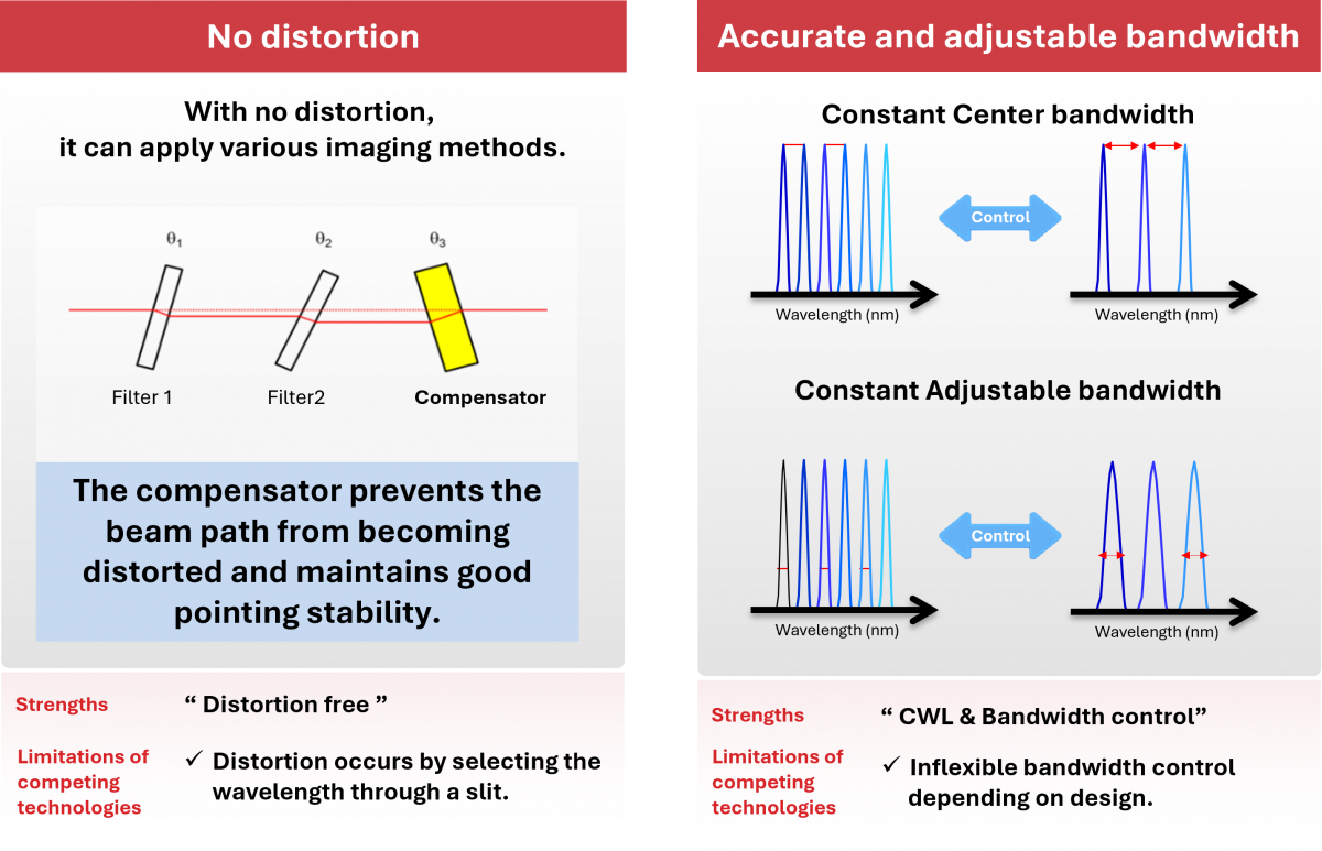 - Poly-RED: Tunable center wavelength with adjustable FWHM (2–15 nm)